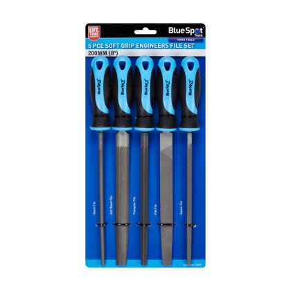 The Blue Spot Tools 5 Piece 200mm Soft Grip File Set is manufactured from carbon steel for increased durability. Features soft-grip handle for increased comfort. Includes 5 soft-grip files.