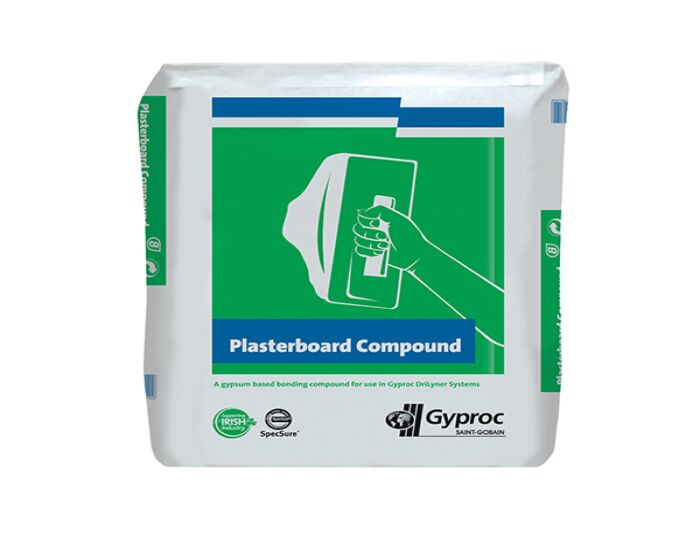 Gyproc Plasterboard Compound is a natural gypsum-based bonding compound which can be used on low, medium and high suction backgrounds and is easy to mix and apply.