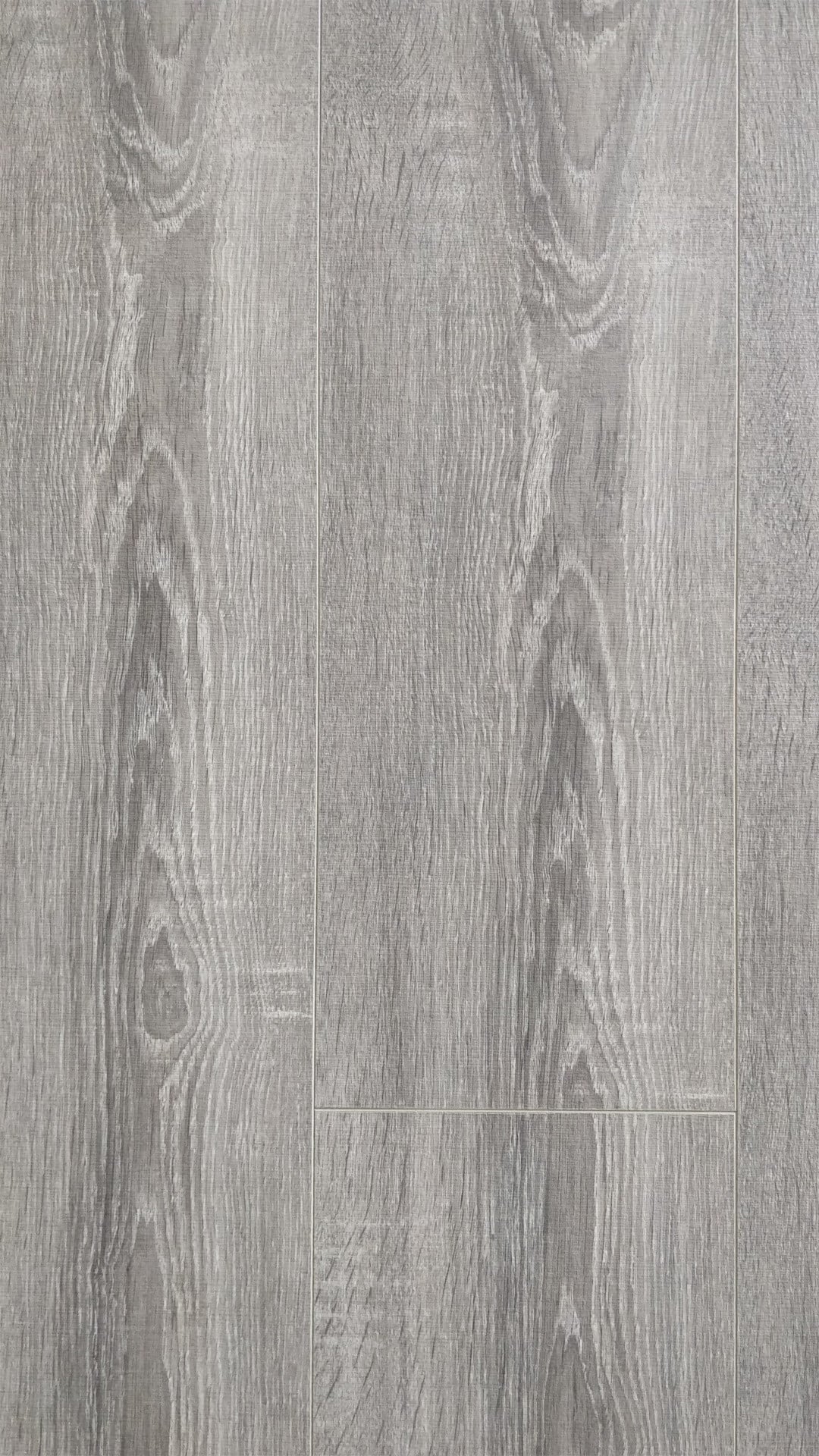 Platinum Grey Oak is a beautiful 12mm laminate. It has a v-groove on all four sides, which gives it that realistic wood floor appearance. The integrated click-fit system allows for easy installation. The AC4 rating makes this floor suitable for heavy domestic and medium commercial use. Platinum Grey Oak has an R10 anti-slip grade, which makes it a slip-resistant floor. The decor has an oak look in a contemporary light grey colour. Ideal for modern styles.