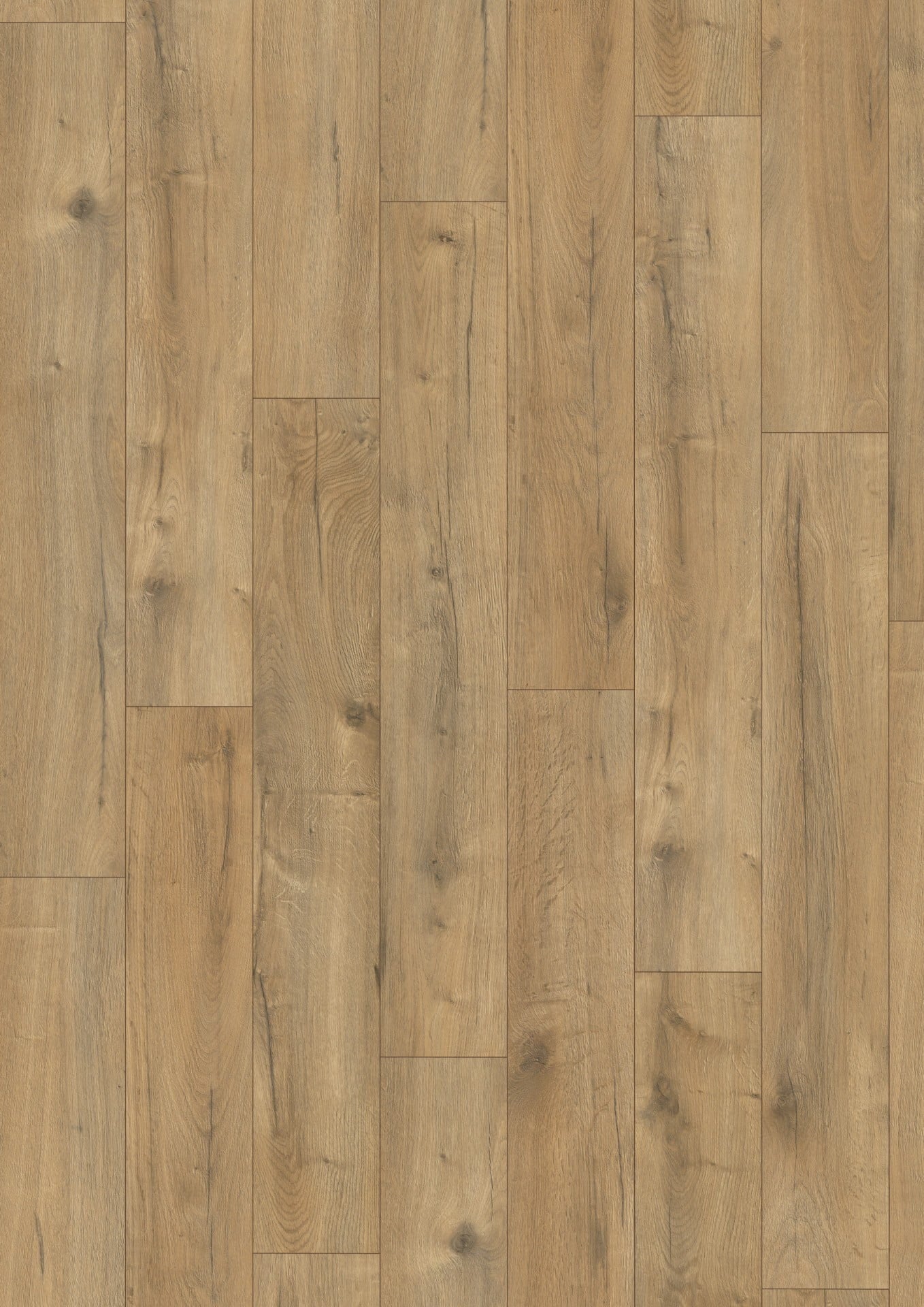 Quebec Vintage Oak Plank is a 12mm laminate floor. It has a v-groove on all four sides, helping to give it that real wood aesthetic. The integrated click-fit system allows for quick and easy installation. The AC4 rating makes this floor suitable for heavy domestic and medium commercial use. Quebec Vintage Oak has a medium embossed surface which gives it an authentic textured finish. The decor contains beautiful cracks and notable knots, which are supplemented by the natural brown colour scheme, making this floor ideal for rustic style designs.