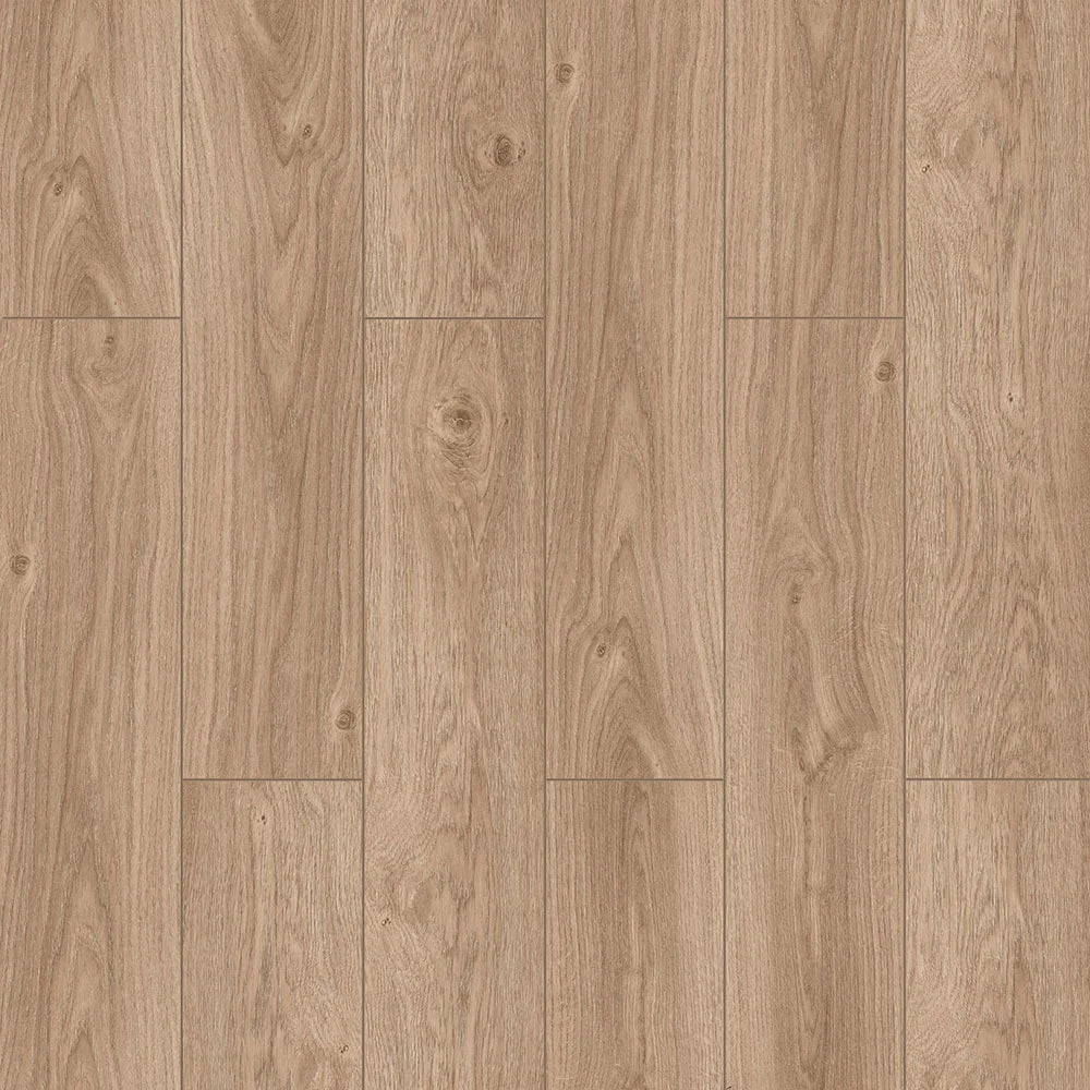 Tokyo Oak 12mm laminate flooring is a stylish new addition to our Forest Collection. With its light brown oak design and saw-cut details, it brings a mix of modern style and rustic charm to any space.
